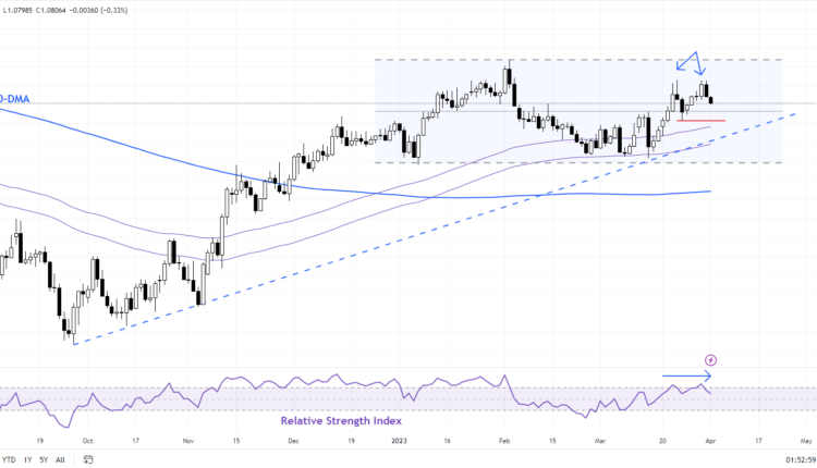 EUR/USD appears to be struggling to extend gains – momentum on the daily charts has stalled in recent sessions as the pair approaches stiff resistance at the February high of 1.1035. Immediate support is at the March 24 low of 1.0710. Any break below would trigger a minor double top (the late-March highs), exposing downside risks toward the March low of 1.0515. Beyond the very near term, EUR/USD looks set to remain within its recently well-established range of 1.05-1.10.As highlighted in the previous update, the rebound last month from around a key floor at the January low of 1.0480 keeps the higher-top-higher-bottom sequence (uptrend) from late 2022 intact.