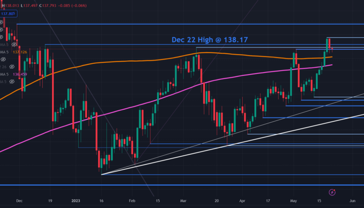 USD/JPY tried to run higher last week after breaking above a prior peak and making a high of 138.75.