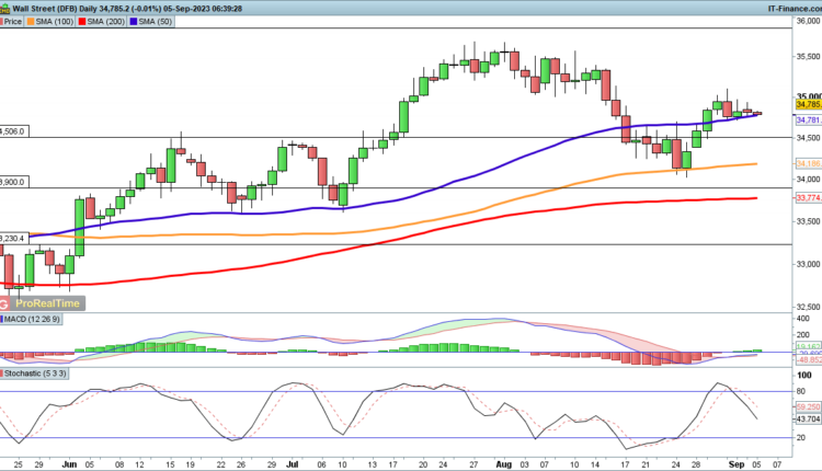Bulls will want to see a close back above 35,000 to provide some positive short-term momentum and to open the way to the July highs.