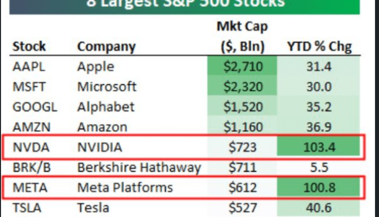 Many analysts have been cautious about the recent moves in US indices. A lot of this stems from the uneven gains being seen with large cap Tech stocks seen driving the rally. Taking a quick look at Meta and Nvidia, who are up over a 100% this year and being part of the top 8 largest stocks in the SP500. A sign once more that megacap tech has been the main source of strength during the recent rally. These companies amongst others who provide software and hardware components to the burgeoning field of artificial intelligence have been the biggest gainers so far and the reason for a cautious outlook.