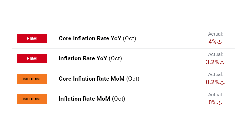 US Inflation Cools to 3.2 % in October, US Dollar Sinks but Gold Gains