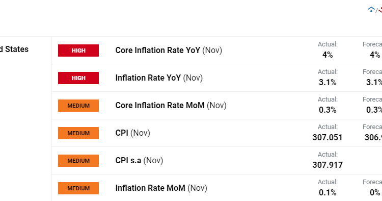 US headline inflation YoY in November declined to 3.1%, in line with estimates while Core CPI YoY remained steady at 4%, the U.S. Bureau of Labor Statistics reported today. The print is the lowest headline reading in 5 months and continues the downward trend of late. The concern and what is likely to keep the current Fed rhetoric going is the slight increase from the MoM print and the Core MoM figure which came in at 0.1% and 0.3% respectively.