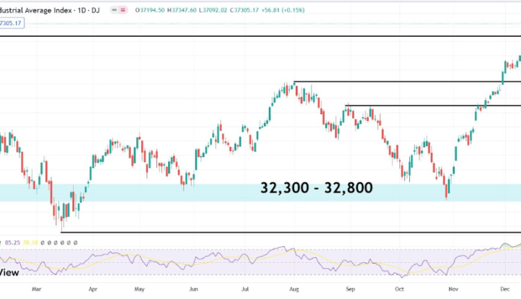 Since the Dow Jones soared above the January 5, 2022, all-time high on December 13, investors are expecting the index to fashion a more powerful high in 2024. The December 15 all-time high has reached 37,347. The primary threat at the moment, however, is that the Relative Strength Index (RSI) has already reached overbought conditions on both the daily and weekly charts (as shown below).
