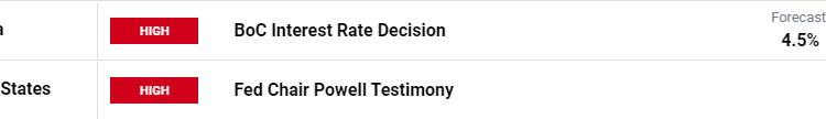 The longer-term picture for USDCAD favors further upside at present with the two central banks now on vastly different paths. Given the hawkish tone adopted by the Fed Chair markets are now favoring a 50bps hike at the Feds March Meeting starting on the 21st. The Bank of Canada on the other hand has already paused its hiking cycle with tomorrow’s meeting expected to see the central bank leave rates unchanged.