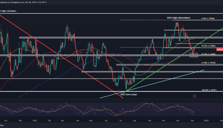 USD/CAD (U.S. dollar – Canadian dollar) retained a negative bias on Wednesday after the Bank of Canada voted to keep interest rates unchanged at 5.0%. While the decision to maintain the status quo was largely anticipated, the BoC left the door open for additional hikes despite abandoning its hawkish inflation characterization and acknowledging that the economy is no longer in excess demand.