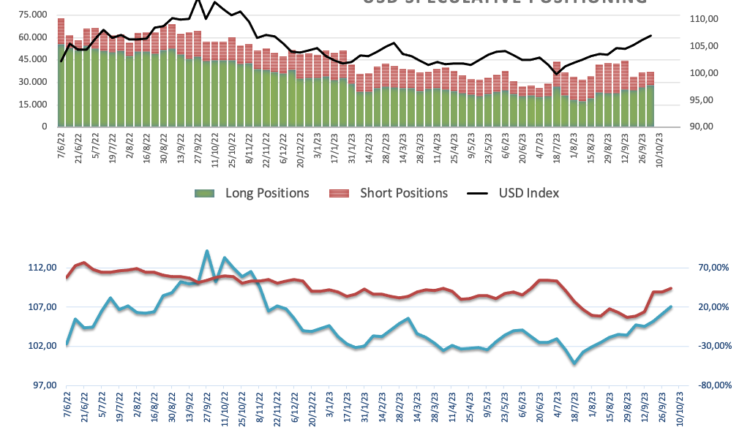 On another front, the USD net longs climbed to levels last seen in mid-December 2022 during the week ended on October 3, according to the CFTC Positioning Report. During that period, the index rose to fresh 2023 tops past the 107.00 hurdle, always bolstered by speculation that the Fed might extend its restrictive stance for longer than anticipated.