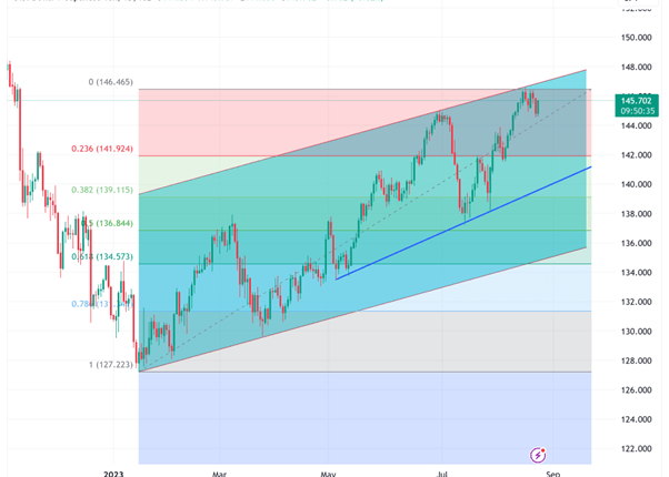USD/JPY bears will probably want to force an early retest of June 30’s peak, 145.131. If they can manage that then the market may start to fear that the pair is topping out, as a tell-tale head and shoulders pattern would then emerge. Support below that would then come in at the first Fibonacci retracement of the rise up to this month’s highs from the lows of January.