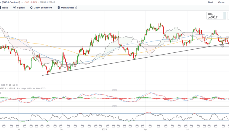 For the week, the NZD/USD seems to be eyeing for a retest of its September low, as failure to sustain above its weekly Ichimoku cloud pattern continues to put a downward trend in place. Its weekly Relative Strength Index (RSI) is also trading below the key 50 level as a reflection of sellers in control, failing to defend recent gains on a firmer US dollar and broad risk-off sentiments. The lower channel trendline may be on watch next as potential near-term support, followed by its October 2022 low at the 0.550 level.