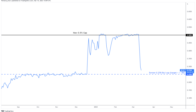 10 Year Japanese Government Bond (JGB) Dropping from the Capped Level of 0.5% to the