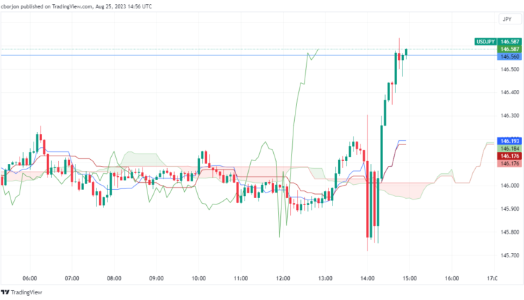 USD/JPY rallies after remaining within familiar ranges in a choppy trading session before the US Federal Reserve Chair Jerome Powell hit the stand and delivered hawkish remarks, putting into the table additional tightening. The USD/JPY is whipsawing around 145.70-146.50 as it eyes a test of the year-to-date (YTD) high of 146.56.