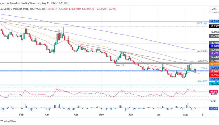 That favored USD/MXN downside, accelerated by soft US consumer inflation data. USD/MXN gained some traction above 17.0000 after the US Department of Labor reported on the Producer Price Index (PPI) for July came at 0.3% MoM above forecasts of 0.2%, while annual numbers increased from 0.2% to 0.8%. Core PPI readings which exclude volatile items to gather a better reading of inflation, climbed 0.3% MoM, exceeding estimates and the prior’s month -0.1% slide, while annually based, exceeded estimates but was unchanged, compared to June’s 2.4%.