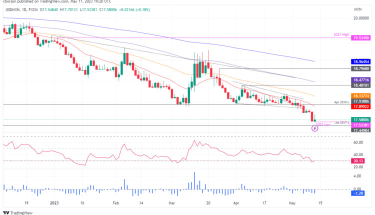USD/MXN trims some of its earlier losses, which sent the pair falling to new six-year lows in the New York session. But a tranche of economic data from the United States (US) prompted traders to buy the greenback, to the detriment of the emerging market currency, which is weakening close to 0.20%. At the time of writing, the USD/MXN is trading at 17.5917.