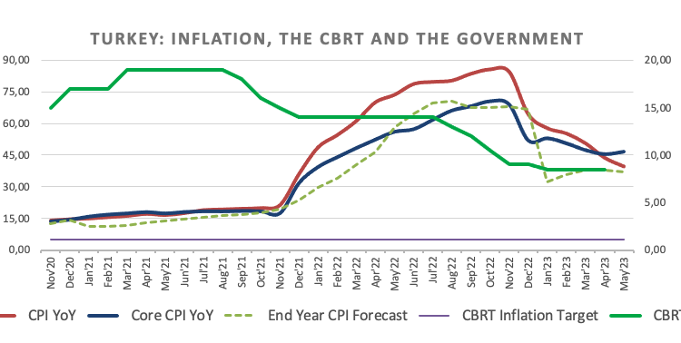 In the docket, inflation figures in Turkey tracked by the headline CPI rose at an annualized 39.59% in May and 0.04% vs. the previous month. It was the first reading below 40% since December 2021. In addition, the Core CPI (CPI excluding energy, food, non-alcoholic beverages, alcoholic beverages, tobacco, and gold) rose 46.62% YoY.