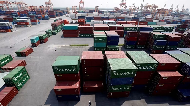 Các container vận chuyển tại một cảng ở thành phố Hải Phòng, Việt Nam. Đất nước hình chữ S là một trong những nước hưởng lợi lớn từ sự cạnh tranh Mỹ-Trung.