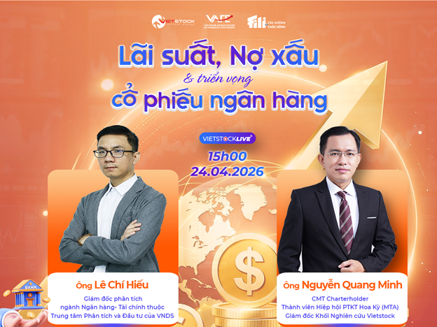 Livestream Vietstock LIVE số 25 sẽ được trực tuyến vào 15h thứ Sáu ngày 24/04/2026 trên kênh Fanpage Vietstock & YouTube Vietstock. Kính mời quý nhà đầu tư đón xem.