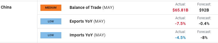 The latest Chinese trade data showed the world’s 2nd largest economy is struggling and that could spell problems for growth-related commodities including copper. Chinese exports in May contracted by 7.5% after recording 8.5% growth in April, the sharpest decline in four months. Imports also fell but beat forecasts and last month’s reading.