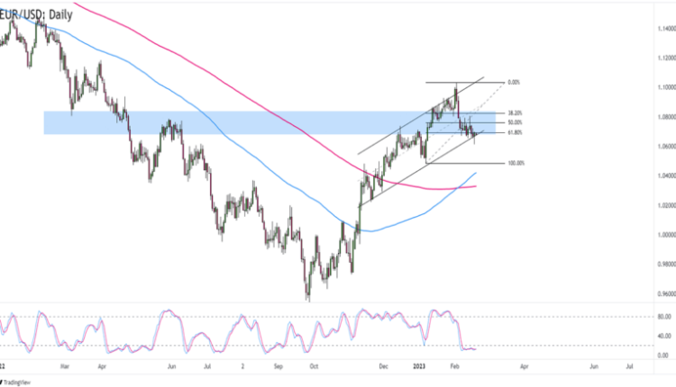 The pair just popped up a long wick around the 1.0600 – 1.0700 area that has been a major inflection zone for bulls and bears since early 2022.