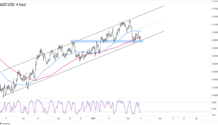 AUD/USD is trading at the .6900 zone, which is juust above an ascending channel support that’s been around since mid-October.