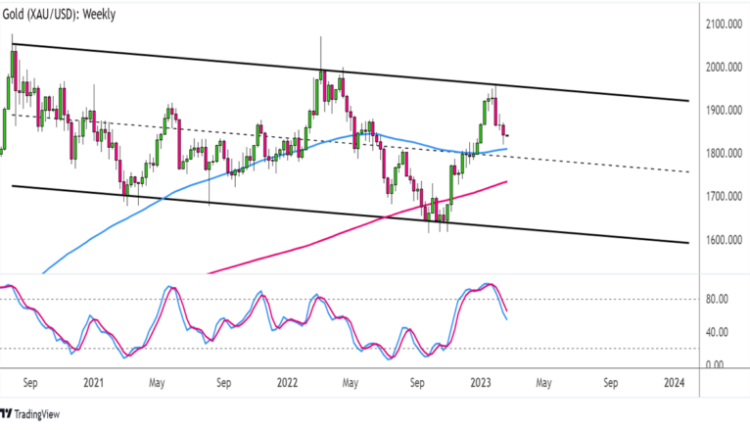 Resistance around the $1,900 mark kept gains in check, putting gold on track towards testing nearby support zones.