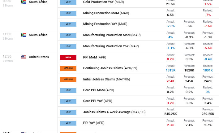 Today’s economic calendar (see below) would generally augment the rand with mining and manufacturing data for March showing noteworthy improvements while US PPI and jobless data is suggestive of a slowing US economy. Fed speak is scheduled for later in the trading day and could provide some short-term volatility for the pair; however, South African President Cyril Ramaphosa seems to be adding fuel to the ZAR fire at the National Assembly.