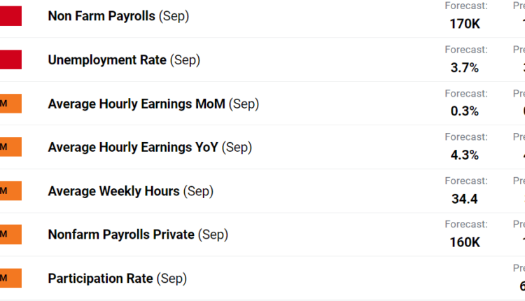 According to consensus estimates, U.S. employers added 170,000 payrolls in September following a gain of 187,000 jobs in August. Separately, household data is expected to show that the unemployment rate ticked down to 3.7% from 3.8% previously, indicating tightness in labor market conditions and a persistent imbalance between the supply and demand for workers.