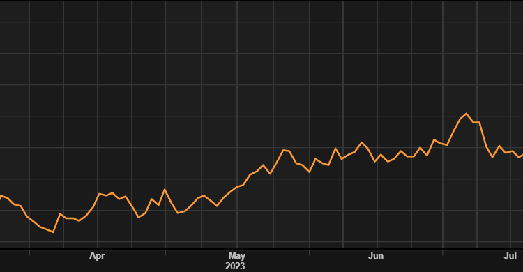 Gold prices have dropped to levels last seen in March as the Fed’s hawkish narrative gains traction through Fed speakers. Minneapolis Fed President Neel Kashkari (a known hawk) added stated that the Fed may need hike one more time as well as maintain rates at elevated levels throughout 2024. This has translated through to the higher US Treasury yields and consequently real yields (see graphic below), weighing on the non-interest bearing metal.