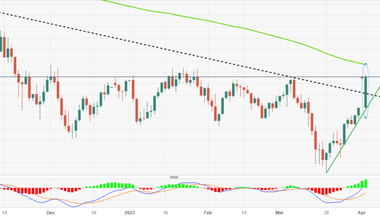 Apart from the OPEC+ output cut, the US Dollar weakness and broad risk-on mood also allowed the WTI crude oil price to remain firmer. That said, the US Dollar Index (DXY) marked a three-week downtrend in the last whereas the receding fears of the banking crisis and the latest toll on the hawkish Fed bets allow the riskier assets to remain firmer.
