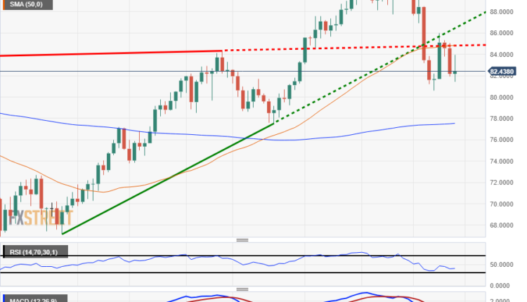 Technical support for US Crude Oil from the 200-day Simple Moving Average (SMA) near $78.00, but the 50-day SMA is parked just above current price action near $84.84, keeping intraday action constrained as energy investors look to spark a fresh lift in crude barrels.