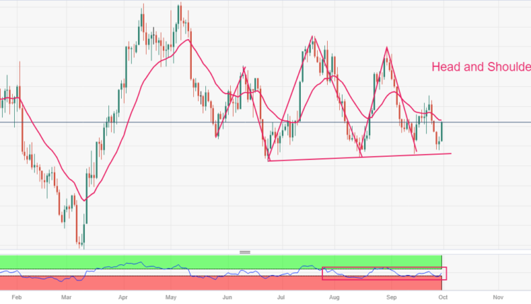 Silver price rebounds strongly from the neckline of the Head and Shoulder chart pattern, which is plotted from June 23 low at $22.11. The asset forms an H&S chart pattern on a daily scale, which indicates a prolonged consolidation whose breakdown triggers a bearish reversal. The white metal trades below the 20-day Exponential Moving Average (EMA) at $23.15, which indicates that the short-term trend is bearish.