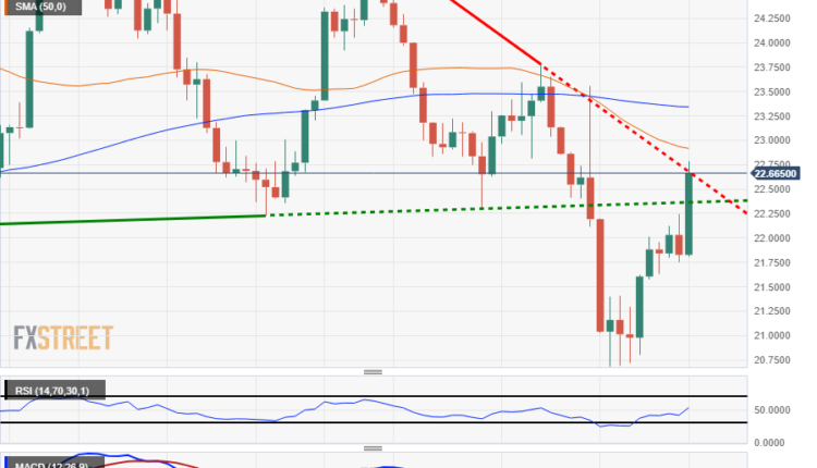 XAG/USD catches a firm Friday bid, climbs back into $22.70