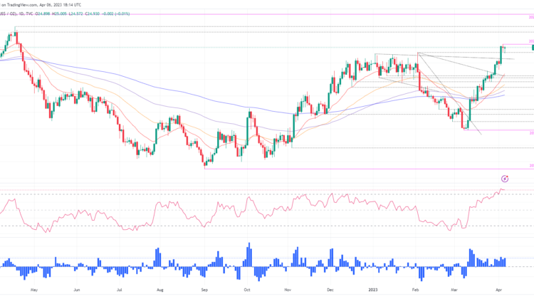 Silver price registers back-to-back doji’s at around the YTD highs hit at 25.13 but stays shy of the $25.00 a troy ounce figure. At the time of writing, the XAG/USD is trading at 24.95 after hitting a daily high of $25.00.