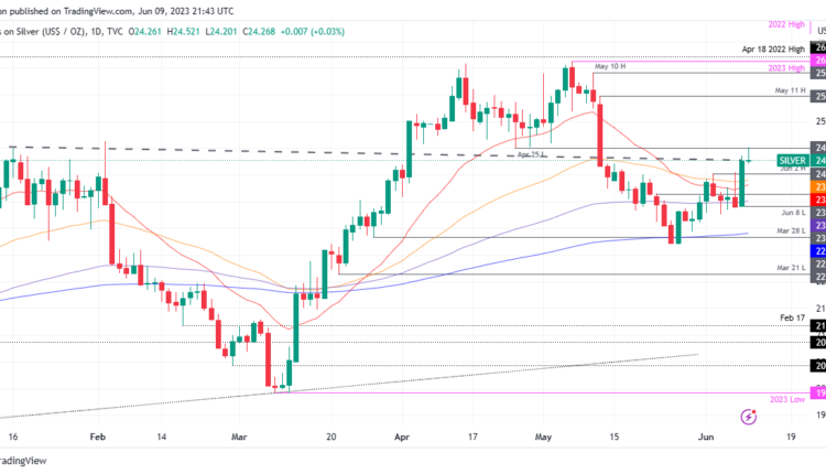- For bullish continuation, XAG/USD must breach $24.49 resistance, opening the path to $25.00 per troy ounce.