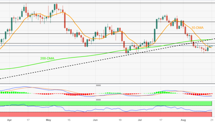 Silver Price (XAG/USD) prints mild gains around $22.80 as it prints a three-day winning steak amid early Monday in Asia. In doing so, the bright metal not only justifies Friday’s daily closing beyond the 10-DMA but also extends the previous week’s rebound from the 61.8% Fibonacci retracement of the March–May upside, also known as the “Golden Fibonacci Ratio”.