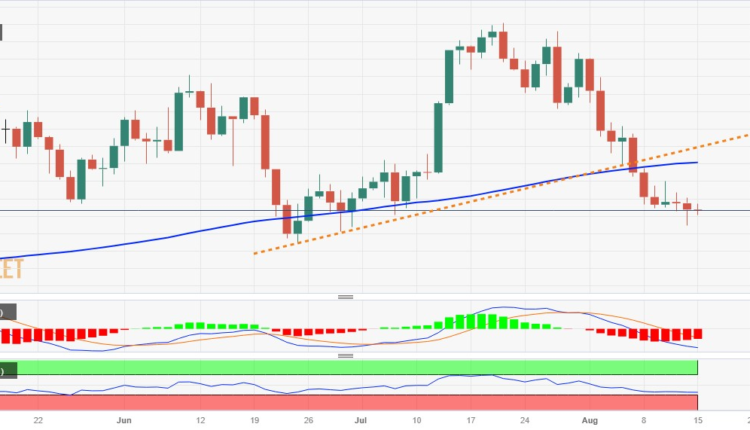Last week's breakdown through a short-term ascending trend line support extending from the June swing low and a subsequent slide below the very important 200-day Simple Moving Average (SMA) was seen as a fresh trigger for bearish traders. Adding to this, technical indicators on the daily chart are holding deep in the negative territory and are still far from being in the oversold zone. This, along with the lack of any meaningful buying, suggests that the path of least resistance for the XAG/USD is to the downside.