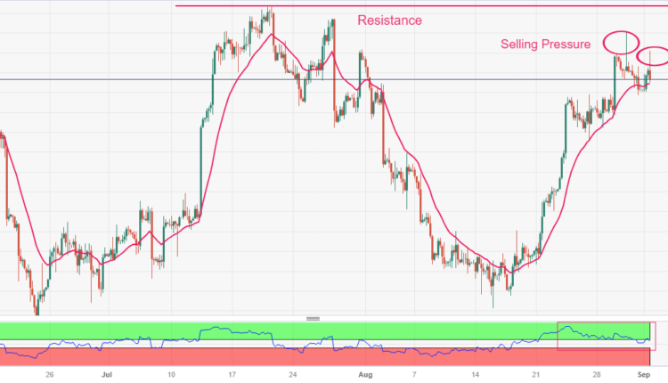 Silver price faces some selling pressure in its upside journey toward the horizontal resistance plotted from the July 20 high around $25.27 on a two-hour scale. Upward-sloping 20-period Exponential Moving Average (EMA) continues to provide support to the Silver bulls.