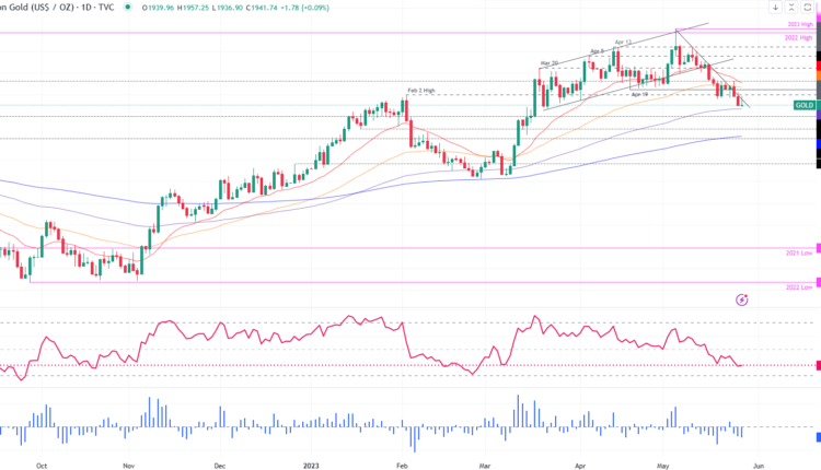 Gold price recovers some ground but remains shy of reclaiming the $1950 figure after solid economic data in the United States (US) suggests the Federal Reserve (Fed) could opt to hike again in June. Consequently, US Treasury bond yields are rising, while the US Dollar (USD) hits new two-month highs vs. a basket of peers. The XAU/USD is trading at $1940.21, still up by a minuscule 0.03%.