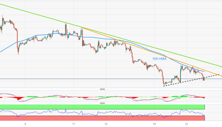 A clear downside break of a three-day-old ascending support line, now immediate resistance near $1,965, suggests further downside of the Gold price. Adding strength to the downside bias are the bearish MACD signals. However, the monthly low of around $1,950 may prod the bears as RSI appears oversold.