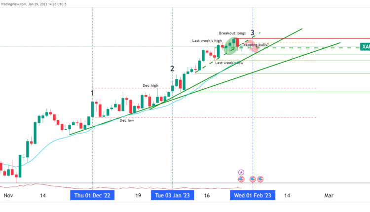 However, if the market is wrong considering how tight the labour market is, then there could be a surge in the US Dollar and that would weigh on the Gold price. On the other hand, a move representing a second consecutive downshift in the Federal Reserve's hiking pace would be deemed positive for the Gold price but the post-meeting communication could still emphasize that the Fed is not done yet in terms of tightening its policy stance. Some Federal Reserve officials have been pushing back against market calls for a pivot and said that they will need to keep rates in restrictive territory for a period of time in order to bring down inflation.