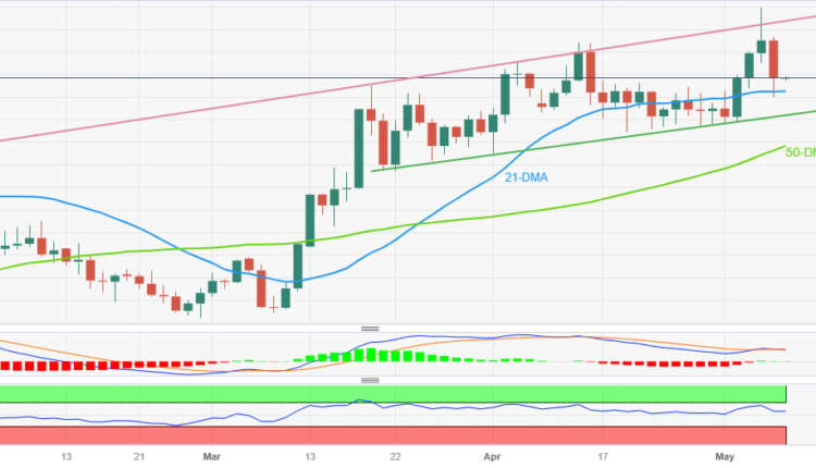 On the contrary, a daily closing below the 21-DMA support of $2,005 isn’t an open welcome for the Gold sellers as the $2,000 round figure and an upward-sloping support line from late March, around $1,985, can challenge the XAU/USD downside afterward.