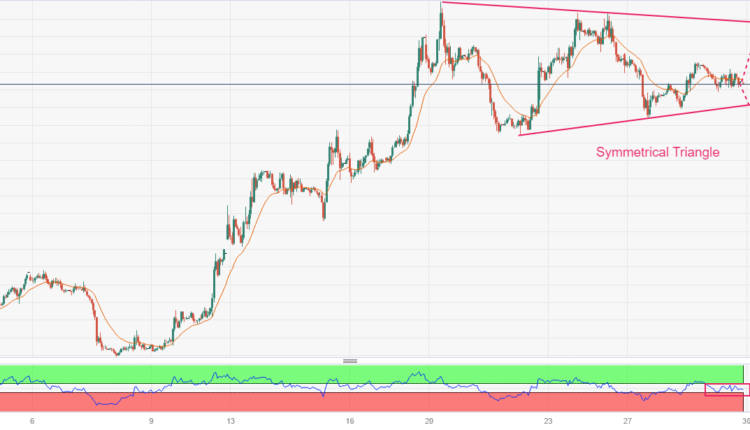Gold price is auctioning in a Symmetrical Triangle chart pattern on a two-hour scale. The upward-sloping trendline of the chart pattern is plotted from March 22 low at $1,934.34 while the downward-sloping trendline is placed from March 20 high at $2,009.88. Any side break of the Symmetrical Triangle, a volatility contraction pattern, will result in wider ticks and heavy volume.
