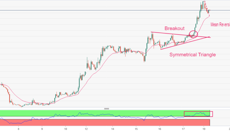 Gold price delivered a stalwart rally after a breakout of the Symmetrical Triangle chart pattern on an hourly scale. A breakout in the aforementioned chart pattern is followed by heavy volume and wide ticks. After a perpendicular rally, Gold bulls are experiencing a momentum loss and are expected to deliver a mean-reversion to near the 20-period Exponential Moving Average (EMA) at $1,964.00.
