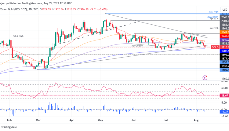 Gold traders weigh US inflation projections and mixed Federal Reserve signals; eyes set on September rate hike odds