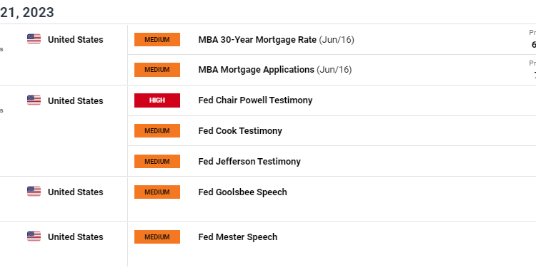 Gold prices have been relatively subdued of recent as markets continue to mull over the recent Fed interest rate pause as well as incoming economic data with particular focus on inflation and labor. The day ahead should stoke some volatility in gold markets with Fed Chair Jerome Powell scheduled to testify before the U.S. House Financial Services Committee (see economic calendar below) where he will submit the Semiannual Monetary Policy Report to Congress. It is expected that Fed Chair Powell will be questioned on the Fed’s monetary policy actions and implications thereof. Additional Fed officials will also be present to testify and may present investors with a clearer picture going forward.