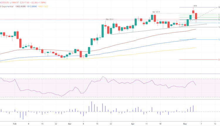 For a bullish continuation, XAU/USD buyers must reclaim the 50% Fibonacci level at $2028. Break above will expose the 38.2% Fib retracement at $2040.60 before clearing the path toward the ATH. Conversely, a fall below $2000 would expose a one-month-old support trendline that passes around the $1970-80 area.