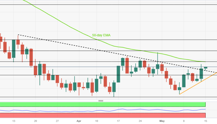 - Convergence of 50-day EMA, 38.2% Fibonacci retracement of March-April downside appears a tough nut to crack for XNG/USD bulls.