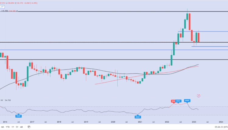 USDJPY on the weekly timeframe has been on a steady decline since February 27, with four consecutive weeks of losses. Price is approaching the psychological 130.000 level (at the time of writing) with the monthly candle looking set to close as bearish engulfing candle. A monthly close below the 130.000 handle should lead to further downside for the pair as we haven’t seen a close below since breaking above the psychological 130.00 level in June 2022.